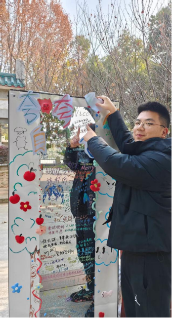 活动现场的“夸夸我”“情绪盲盒”“玩个毛线”等游戏人气高涨,参与者写下烦恼投入“情绪盲盒”,换取“鼓励盲盒”的抽取机会,在轻松氛围中学会正视情绪和烦恼;“玩个毛线” 用毛线串起被忽略的日常小事,引导大家关注生活中的小确幸;”夸夸我”的墙上留下了同学们美好祝愿。路过的师生纷纷驻足观看,不时还拿出手机拍照记录,留下了印象深刻的美好回忆。