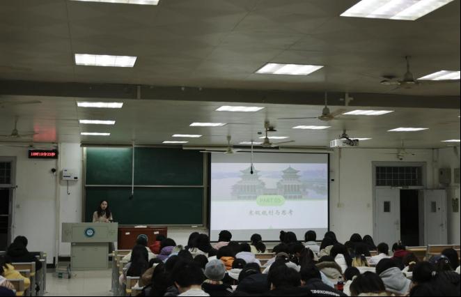 侯奉嘉老师向同学们解读铸牢中华民族共同体意识的深刻内涵,号召全体同学深刻感悟各民族手足相亲的深厚底蕴,践行民族团结理念,共同营造各民族平等、团结、互助、和谐的良好氛围,让青春在祖国大地上浇灌出民族团结进步之花。