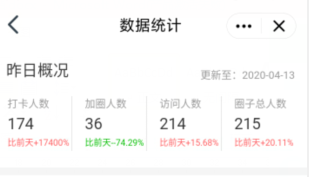 经过班委们的大力宣传,活动第一天运动打卡圈子成员就达到214人,占总人数的79.6%;第一天成功打卡人数为174人,占参与总人数的81.3%。姚老师也积极参与打卡,鼓励同学们积极参与,坚持锻炼。