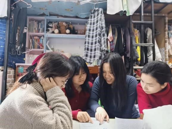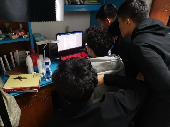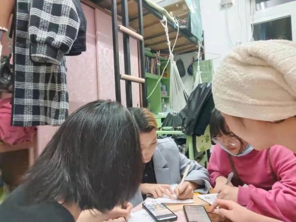 (图为我院2019级同学于寝室共同学习讨论电信诈骗案件)