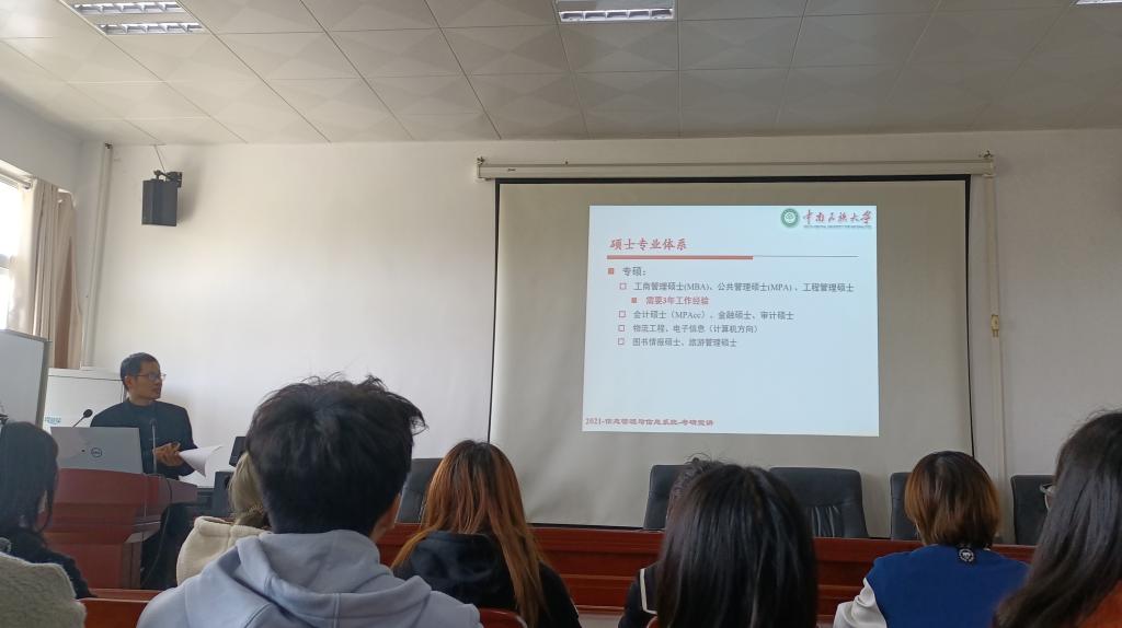 随后,杨单老师对比了历年来信管系学生考研、就业的数据,结合之前收集的18信管和大数据实验班考研就业的问卷调查数据,从数据的角度对考研就业的基本情况作了详细分析和说明,并向同学们提出了几点建议,准备就业同学要做到“四个需要”:需要明确就业方向、需要巩固课程理论知识、需要积极参与实习、需要务实专业技能;准备考研同学要做到“四个坚持”:坚持方向目标不动摇、坚持积极获取外界信息、坚持充分利用各方资源、坚持与师长交流和沟通。