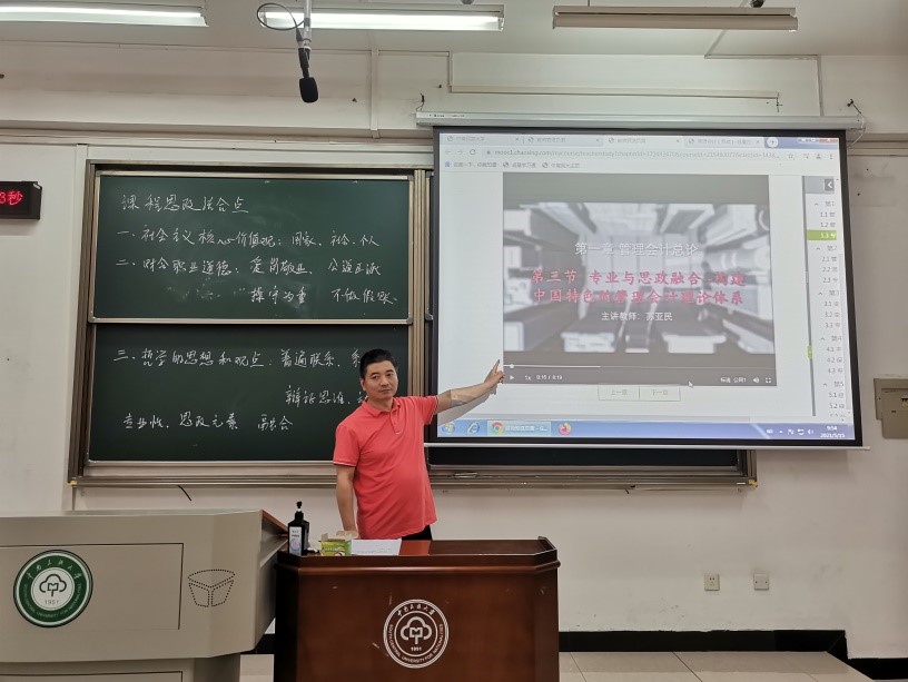 (财务管理系 毕妍 供稿)2021年5月15日10:00,15-208教室热情洋溢,一场别开生面、由财务管理系举办、财务管理系全体教师、研究生及本科生代表共计50人参加的课程思政公开课伴随着学习通悦耳的背景音乐拉开序幕。此次公开课由校级课程思政示范课《管理会计》负责人、校级课程思政教学团队负责人、财务管理系主任苏亚民教授主讲。