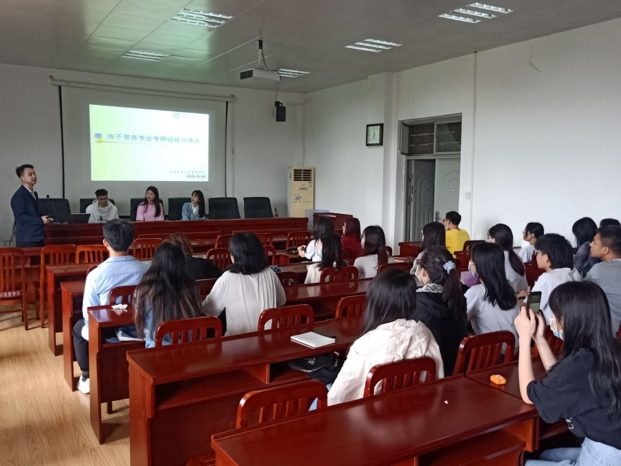 (文字:肖李)5月16日,2018级电子商务专业于5栋506会议室召开考研经验交流分享会。今年,2017级电商专业考研同学获得喜人成绩,7位学子如愿以偿,考研成功。为帮助18级考研同学高效复习,科学备考,本次交流会特邀2017级邓海莉(西南大学)、朱学林(对外经济贸易大学)、罗源(中共湖北省委党校)三位同学讲述自身经验,交流切身体会。