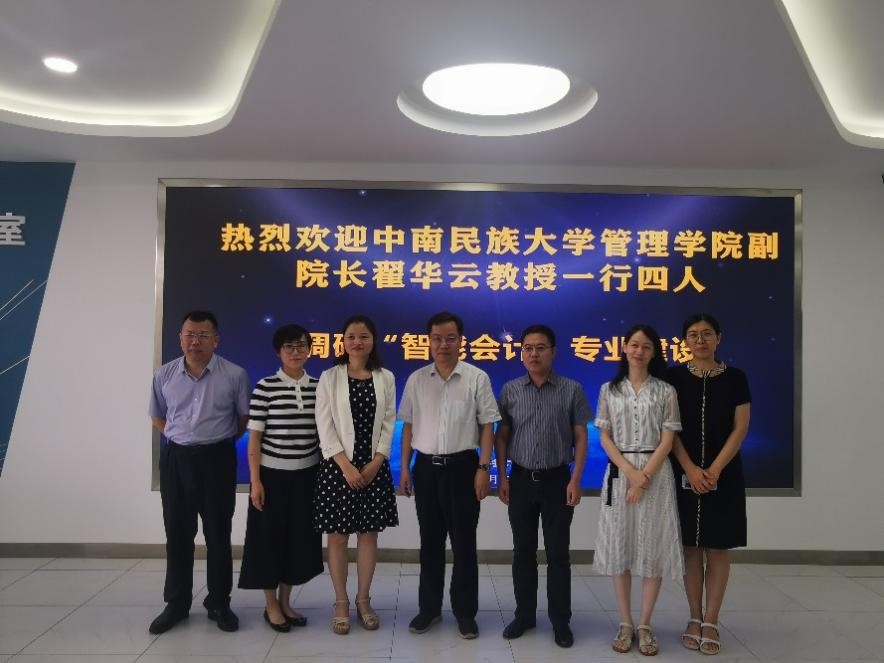 首先,翟华云副院长与李超锋副院长带领会计系教师在山东财经大学深入学习了智能会计班建设的实践经验。山东财经大学智能会计班已经开设两年,撰写了5本智能会计方向的教材,在全国高校智能会计学专业建设中走在前列。山东财经大学管理学院院长王爱国教授首先介绍了智能会计发展的方向与专业建设思路。山东财经大学管理学院会计信息化系主任牛艳芳教授系统介绍了山东财经大学智能会计实验班建设经验与培养方案等。会后翟华云副院长、李超锋副院长、王爱国院长和牛艳芳教授进行了深入的交流,获取了较为深入的专业建设意见。会计系主任刘华老师和会计系刘晓霞老师与山东财经大学会计信息化系教师也进行了深入交流,在课程建设与学生培养等方面都收获了启发性较大的建设意见。