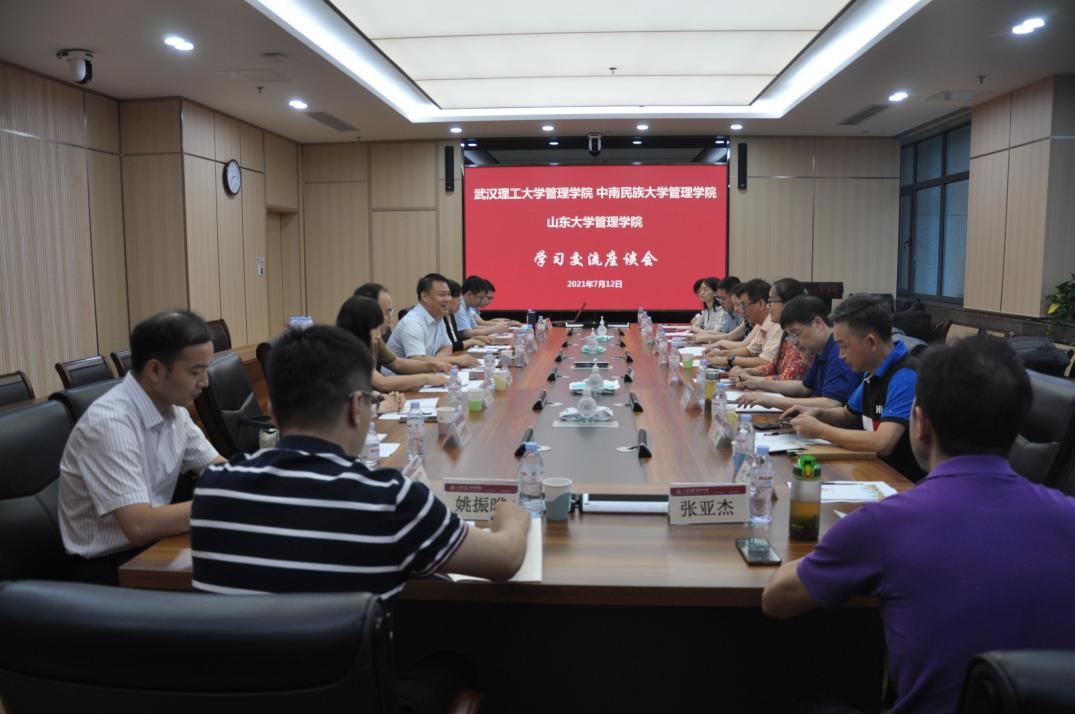 翟华云副院长与李超锋副院长还带领会计系教师赴山东大学,与山东大学管理学院副院长路军伟教授、会计学一流专业建设负责人潘爱玲教授、会计系主任李彬教授以及山东大学会计学专业建设团队进行了调研与座谈。山东大学管理学院会计系师资力量雄厚,是首批会计学国家一流专业建设点。李彬教授和潘爱玲教授分别深入介绍了山东大学会计系国家一流专业建设情况,分别从培养方案、课程改革、学生培养等方面进行了详细深入的介绍,并依据威尼斯官网会计学专业的特色提出了中肯的专业建设意见。继而双方深入就智能会计学发展与高层次会计人才培养等方面进行了具体的交流。