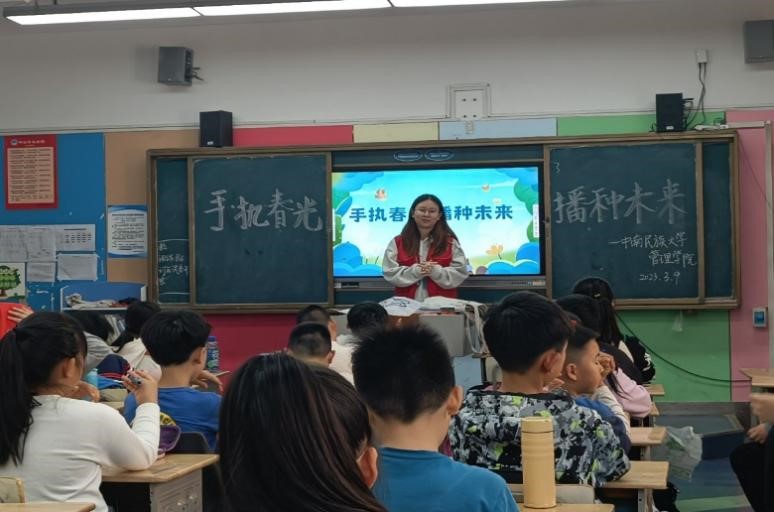 春归大地,万物复苏,在植树节来临之际,管理学院青年志愿者们为小朋友进行了“植树节”主题宣讲。在活动中,孩子们逐步深入地了解了植树节的由来,知晓我国“植树节”的节日背景以及节徽的意义。本次“植树节”的宣讲,不仅可以让小朋友欣赏松树不屈的风骨、白杨坚韧的挺拔、垂柳别样的柔美,也能学习到更多关于自然和绿化的知识。