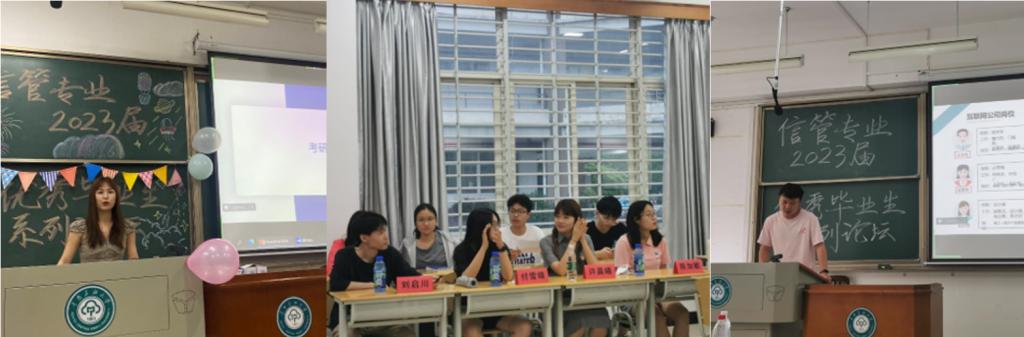 为帮助信息管理与信息系统专业学生更好地规划大学生活,解决同学们对未来发展方向的问题和疑惑,信管专业于2023年5月26至28日举办了优秀毕业生系列论坛活动,系列活动分为考研、保研、就业三个专题,并邀请信管专业13位优秀毕业生代表进行分享。