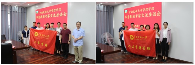 曾书记、杨经理与教师团队在华贵集团进行了座谈会。会上,杨经理围绕集团人才需求进行了介绍,他谈到:“目前集团对管理人才需求仍较大,特别是供应链生产管理储备人才,在财务、人资、营销等方面也有对应需求,希望能与民大管理学院进一步加强沟通对接。”曾书记详细介绍了集团发展现状与未来前景,并就开展校企合作等方面谈了自己的想法和期望。工商管理教研室张美华主任和人力资源管理教研室毛忞歆主任分别介绍了学院基本情况,表示管理学院的人才培养方向与华贵集团的用人需求高度契合,希望以访企拓岗调研活动为契机,强化校企合作,为企业提供人才支撑,进一步拓宽学生就业渠道。双方围绕毕业生就业、人才培养、实习实践、产教融合以及学院为企业提供咨询、培训等事宜进行了广泛交流。