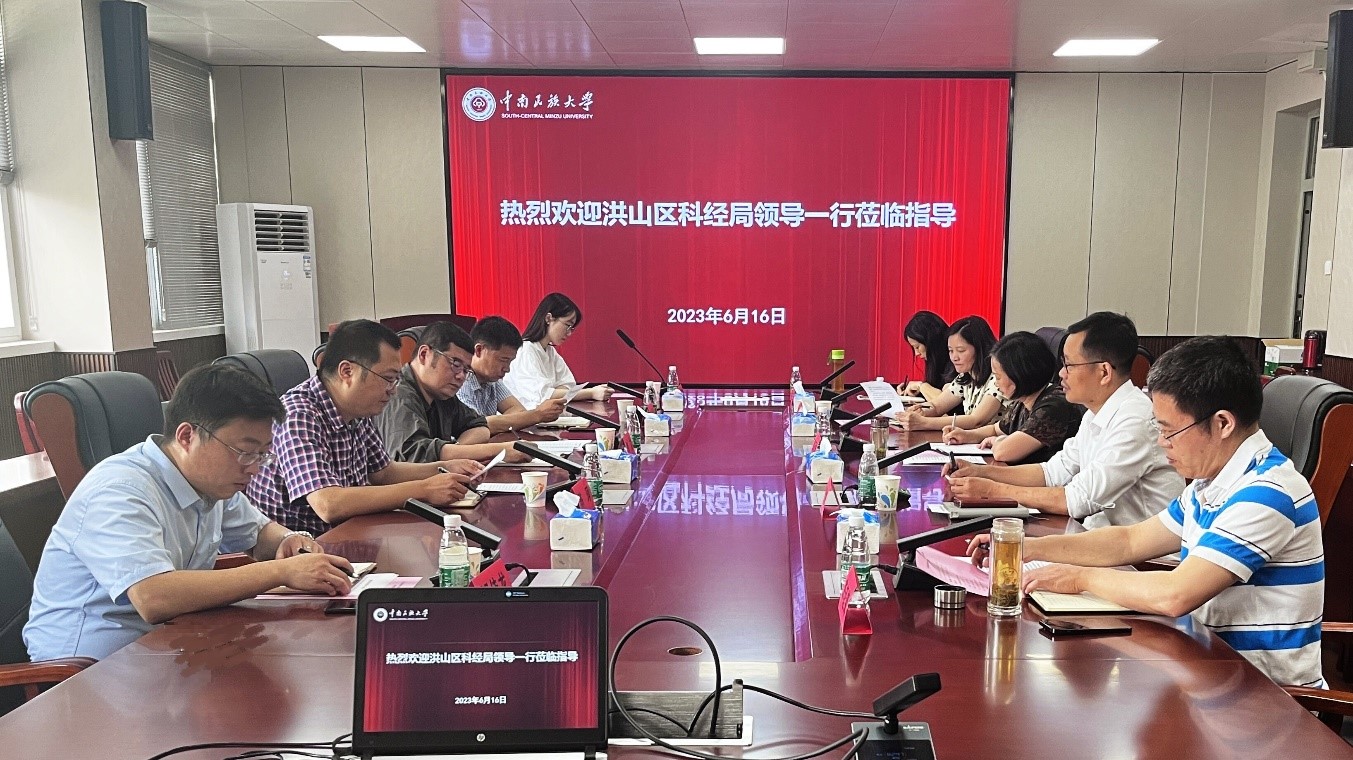 为持续加强校地合作,进一步深化产学研用协同创新,塑造发展新动能新优势。2023年6月16日上午,武汉市洪山区科经局党组负责人李立、副局长刘功勋和相关部门负责人等一行来管理学院,就深化政校合作事宜调研交流。管理学院党委书记邹反修,院长张劲松,副院长翟华云、李超锋、周运兰参加了调研交流活动。