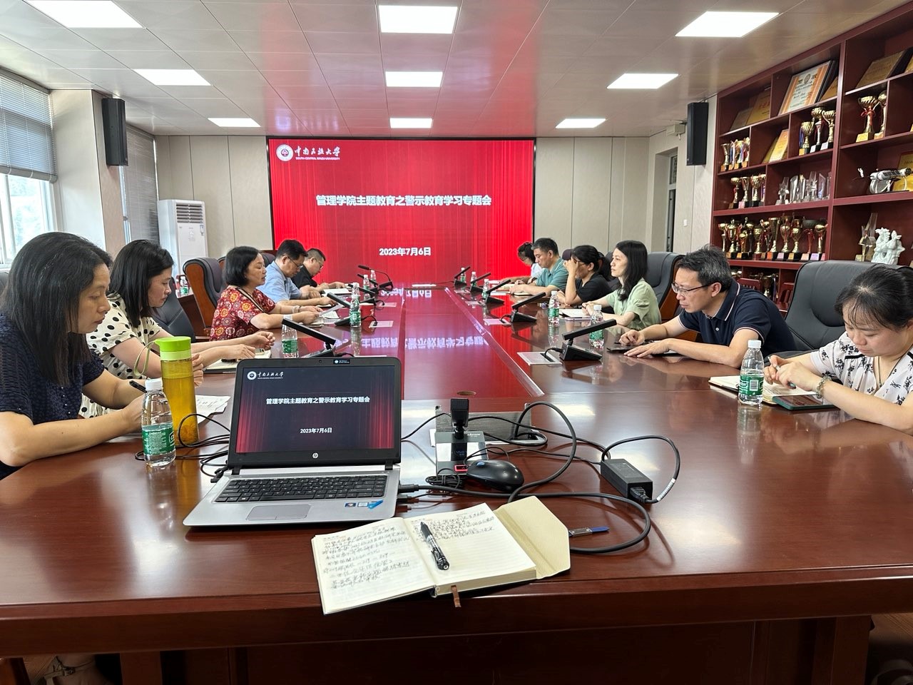 2023年7月6日,为落实国家民委党组和学校党委的工作会议精神,管理学院党委结合学习贯彻习近平新时代中国特色社会主义思想主题教育在206会议室召开警示教育专题会议,学院全体领导班子、教研室主任和教师支部书记参加,会议由党委书记邹反修主持。