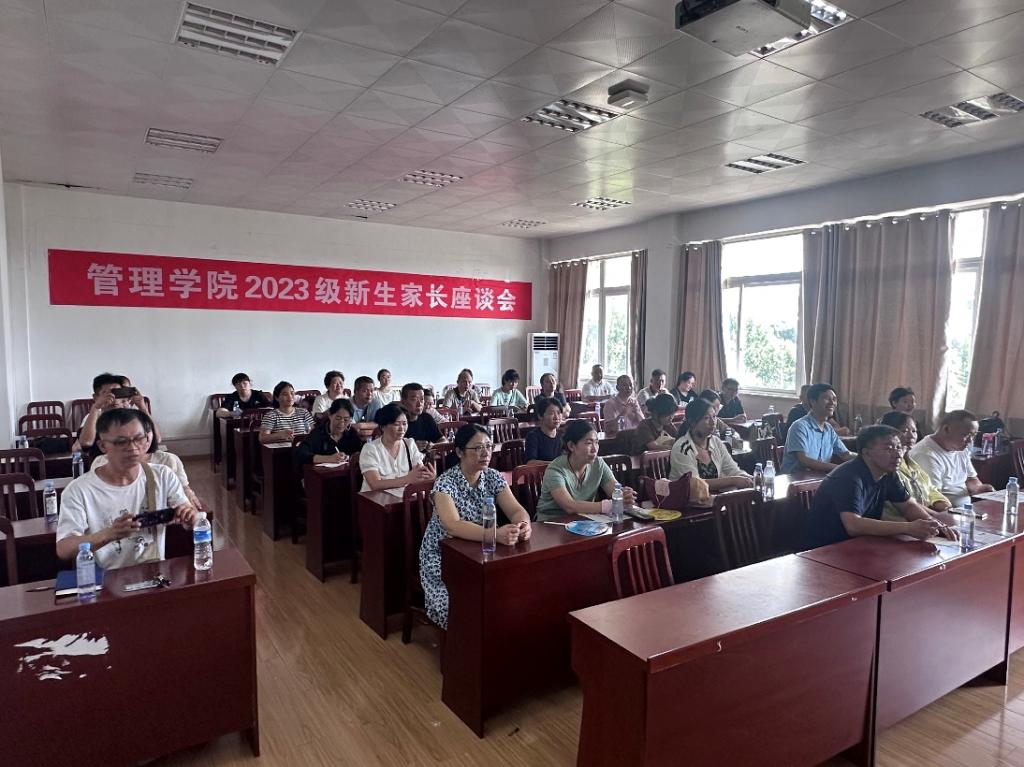 9月7日下午,管理学院2023级新生家长座谈会在5号楼506会议室举行。学院党委书记闻亮、副书记李明亮出席会议,会计教研室主任刘华、信息管理与信息系统教研室主任杨单、旅游管理专业系主任王剑、新生辅导员李丹、新生班导师代表周雪敏及来自全国各地区的60余名家长参加座谈会。会议由李明亮主持。