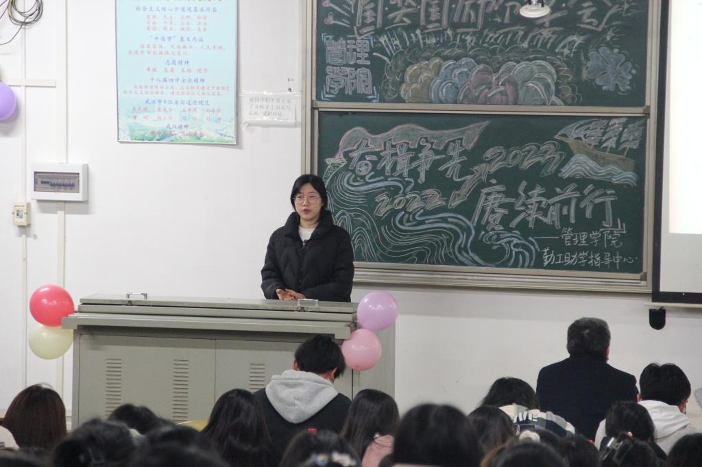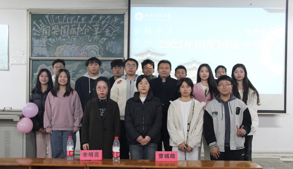 11月24日晚,管理学院2023年“奋楫争先,赓续前行”国奖、国励分享会在1号楼201举行。学院党委副书记李明亮出席本次分享会,学院资助工作负责人、2022级辅导员曾城皓,