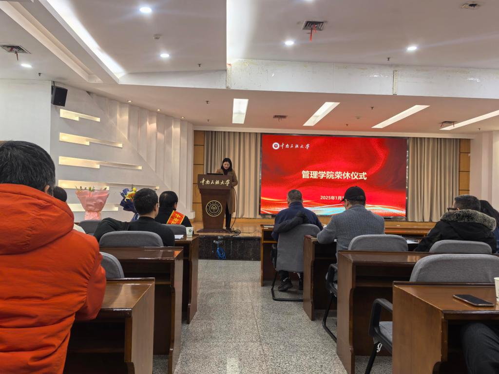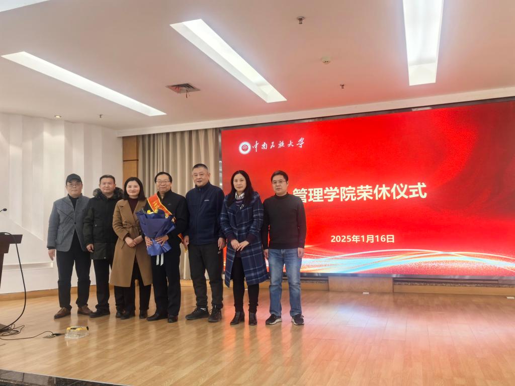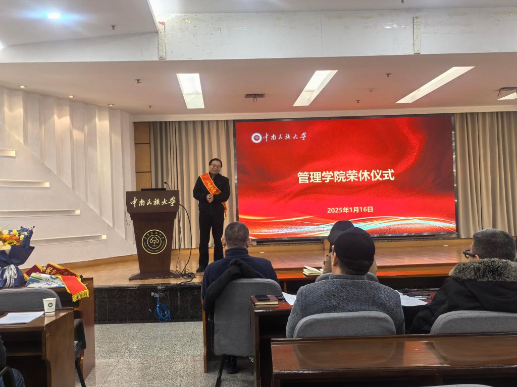 为了向退休教师在教育教学与科研领域的卓越贡献表达深切敬意,并重温师生、同事及朋友间的深厚情谊,2025年1月16日下午,我院于润良报告厅,为邓辉、余序洲、张振、黄贤玲四位退休教师举行了一场隆重的荣誉退休庆典。此次活动汇聚了学院领导、部分退休教师代表,以及管理学院全体在职教职员工。大家共同见证了这一意义非凡的时刻。