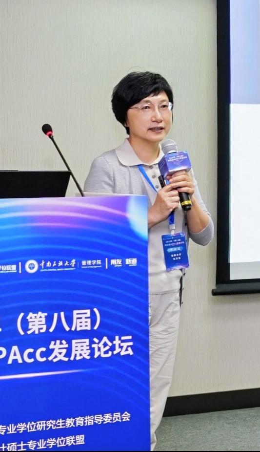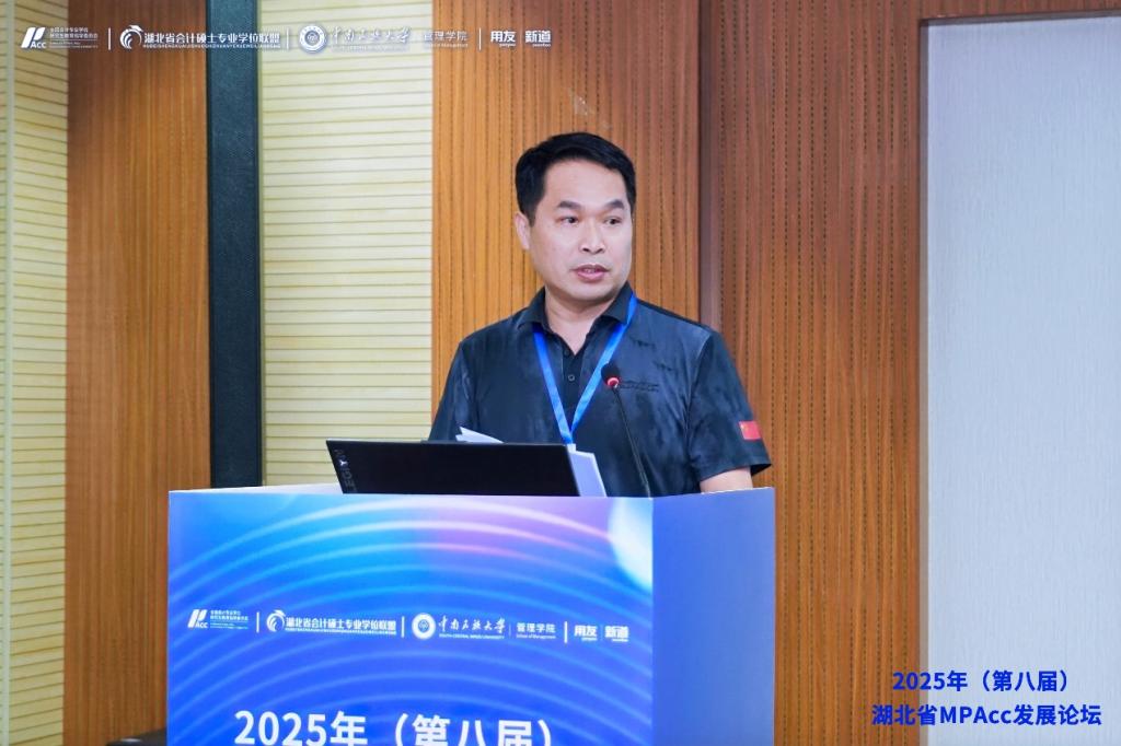 湖北省教育厅学位管理与研究生教育处二级调研员陈进军在致辞中充分肯定了湖北省MPAcc教育取得的进展,并表示在新时代背景下,MPAcc教育应进一步深化产教融合,构建更加紧密的协同育人机制,更好服务地方经济社会发展。