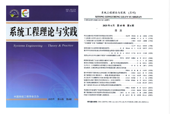 成果速递——我院教师朱杰在《系统工程理论与实践》期刊发表学术文章
