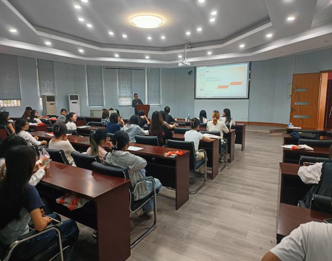 活动现场座无虚席,气氛热烈。林靖钦首先系统性地介绍了普华永道中天会计师事务所的规模布局、业务范围、企业文化和人才培养战略,重点讲解了针对应届生的招聘计划与职业发展路径。林靖钦特别详细解读了针对应届毕业生的招聘流程、岗位需求以及清晰的职业晋升通道,他强调:“我们寻找的不仅是专业技能匹配的人才,更是具备学习能力、创新思维和团队精神的未来伙伴。”其深入浅出的讲解,使同学们对这家行业巨擘有了更为全面和深刻的认识。