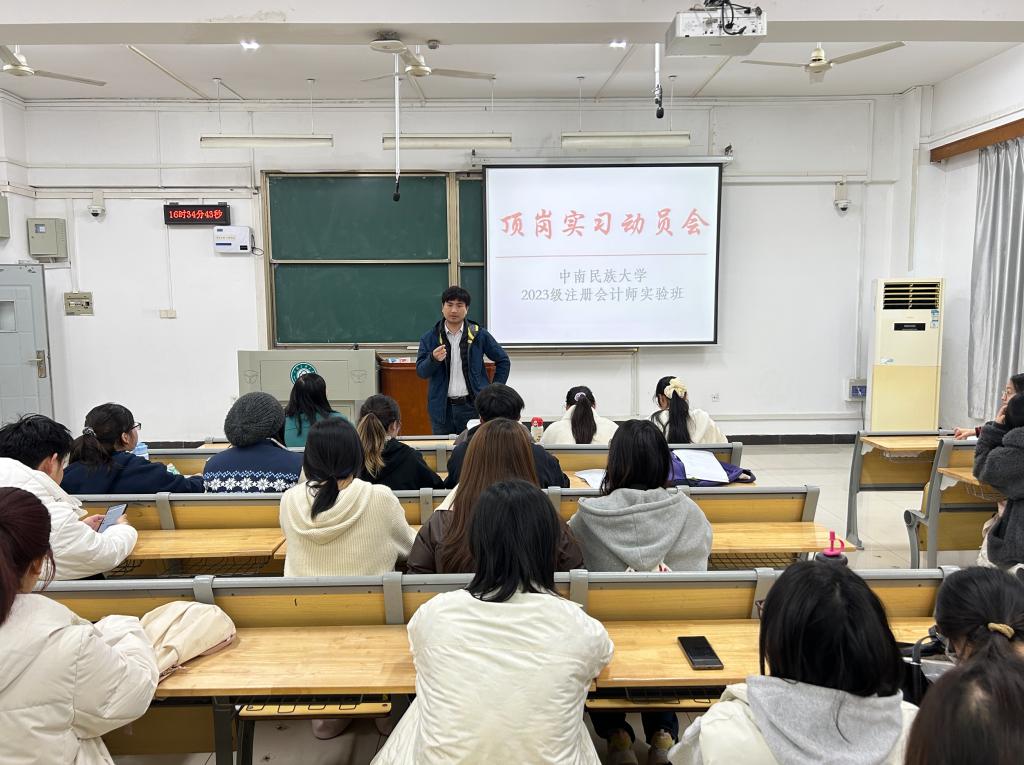 启动仪式上,刘亚伟老师寄语全体同学,提出三点期望:一是始终牢记安全底线,确保实习期间人身与财产安全;二是主动把握学习机会,在真实业务场景中锤炼专业本领;三是时刻铭记身份使命,以出色的综合素质展现中南民大学子的风采。他强调,这次实习既是专业淬炼,也是形象展示,鼓励同学们在实践中成长,在挑战中突破。