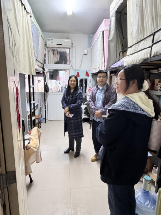 学院领导班子赴一线督查本科生宿舍情况,闻亮、王重阳走进23栋男生宿舍,与宿舍长交流宿舍管理要点,详细了解日常值守、隐患排查、应急处置等工作开展情况,实地排查安全隐患;翟华云与周运兰分别前往22栋、26栋女生宿舍,与宿舍长并肩巡查寝室,仔细查看宿舍安全状况与内务整理情况,叮嘱宿管人员要持续做好宿舍安全值守与日常巡查,共同守护学生住宿安全。