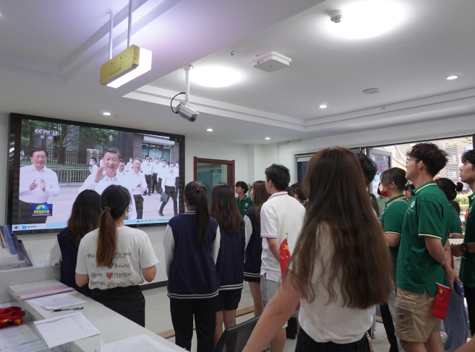 师生观看总书记在智苑社区广场同干部群众亲切交流的新闻联播。 学生工作部 供图