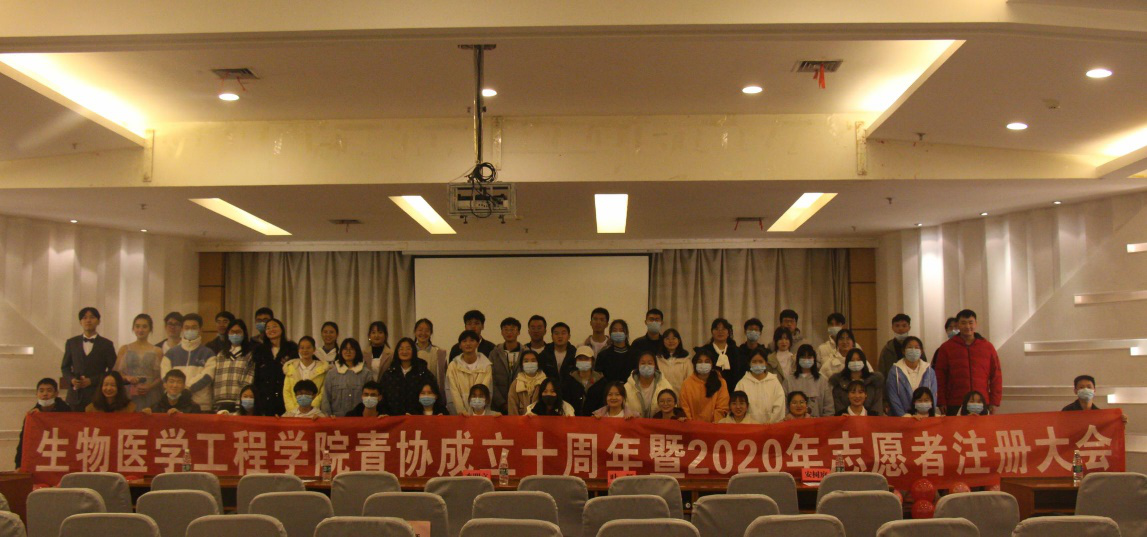 2020年11月28日下午,威尼斯886699生物医学工程学院于润良报告厅举办青协成立十周年暨志愿者注册大会,学院党委副书记李明立、团委书记叶颖、兄弟学院青协代表出席,学院团委学生会各部门代表、学院青协全体成员参加了大会,活动由向帅和马蕊主持。