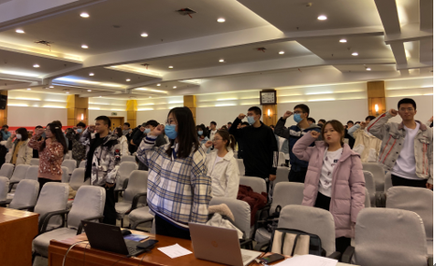 2020级新成员宣誓成为志愿者 首先,学院党委副书记李明立致词,他在致辞中代表学院衷心祝贺我院青协成立十周年,向一直以来关心支持青协工作的领导、老师、同学们表示衷心的感谢!生医青协自2010年成立以来,秉承“奉献,友爱,互助,进步”的志愿者精神,积极参与助教扶贫、社区服务、环境保护,帮助孤寡儿童等大型公益活动,取得了很好的成绩,这些成绩受到了广师生的好评,得到了学院的充分认可。他从完善和改进工作制度,不断提升志愿服务能力水平;立足学院,面向社会,不断提升志愿服务影响力;积极参与志愿服务,实现服务他人与自身的成长三个方面对青协工作的提出了建议。并希望青协继续保持优良传统、务实的作风,在新的起点上做出更优的成绩。