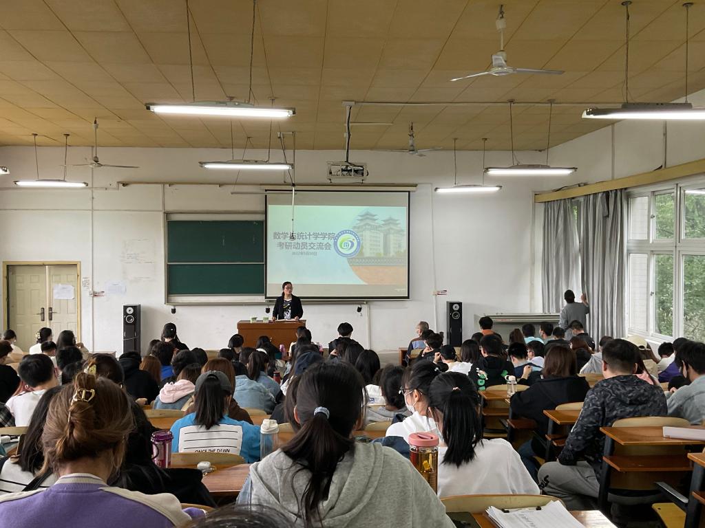5月10日下午4点,数学与统计学学院在文一楼301举行考研动员交流会。数学与统计学学院党委副书记郭琳、副院长朱忠熏、副院长张军好、教师代表殷红燕、研究生秘书刘鹍、辅导员张箐沁等老师出席本次交流会,同时到场的还有研究生代表以及2019级全体同学。考研动员交流会由党委副书记郭琳主持。