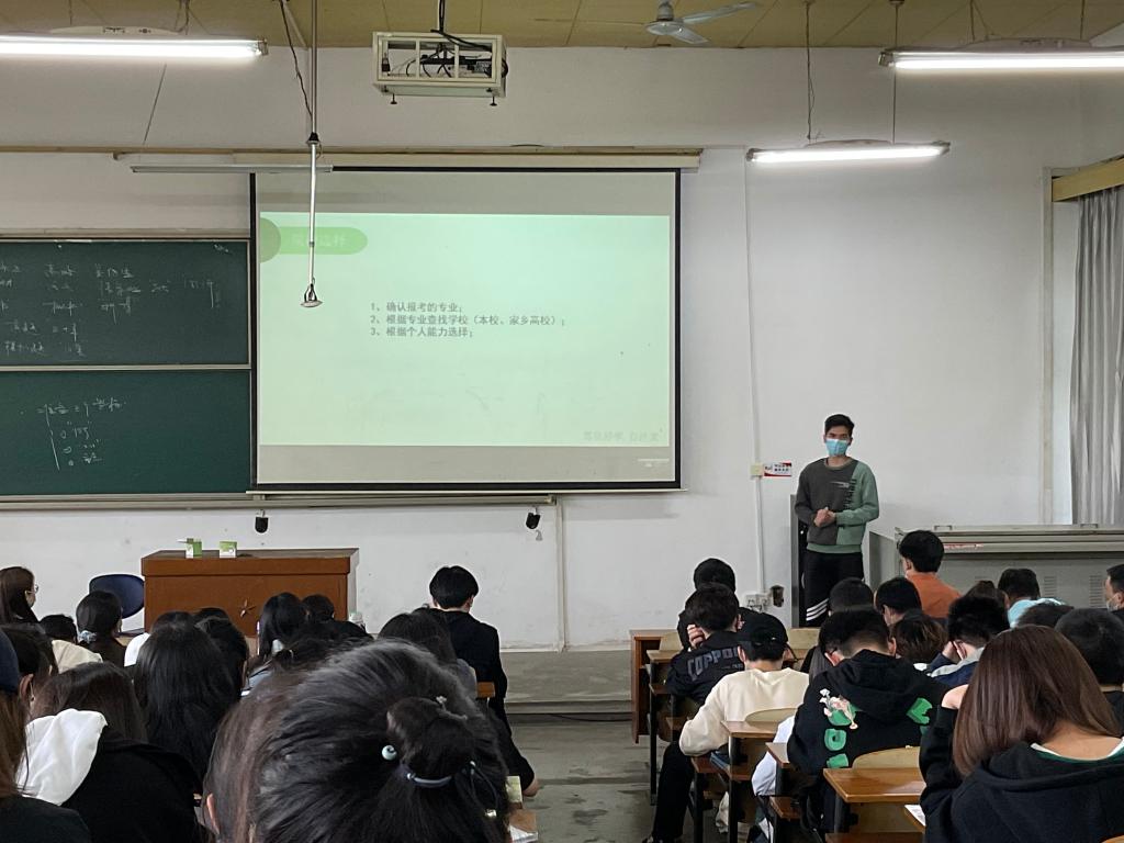 研究生代表包福荣及尚昊分别从院校选择、课程复习和给学弟学妹的建议等多个方面为大家做了分享,并且强调了考研心态和身体健康的重要性。