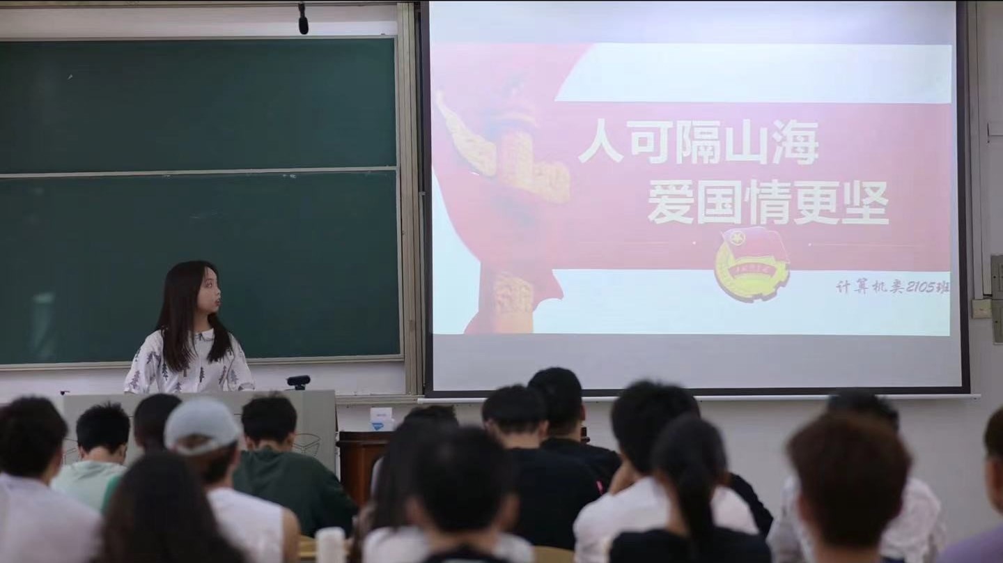 “人可隔山海,爱国情更坚”。 计算机科学学院 供图