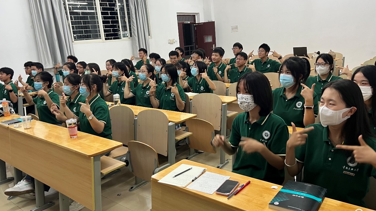 数学类2202班学习“爱国手指舞”。 数学与统计学学院 供图