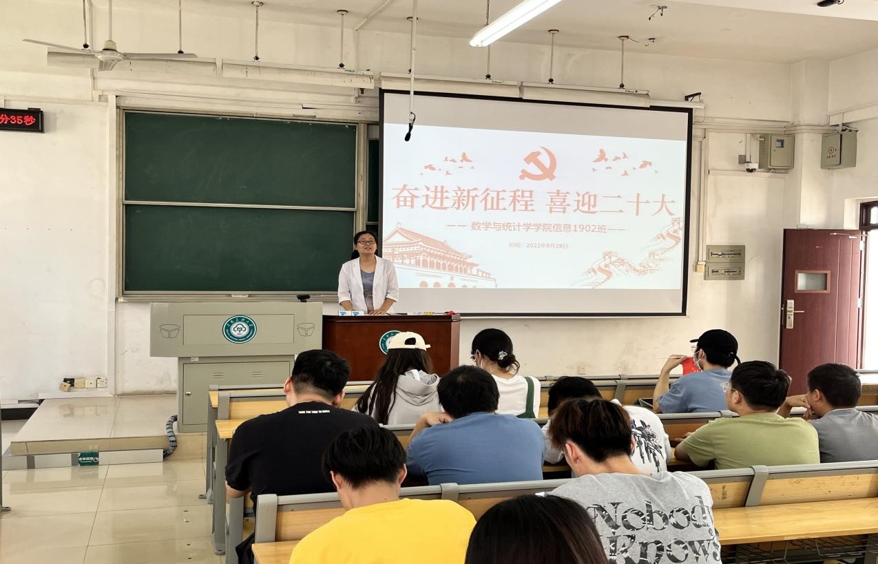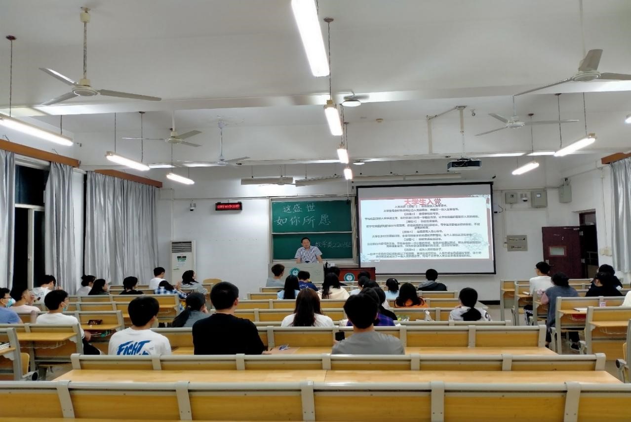 数学类2201班班导师胡军浩教授介绍入党流程。 数学与统计学学院 供图
