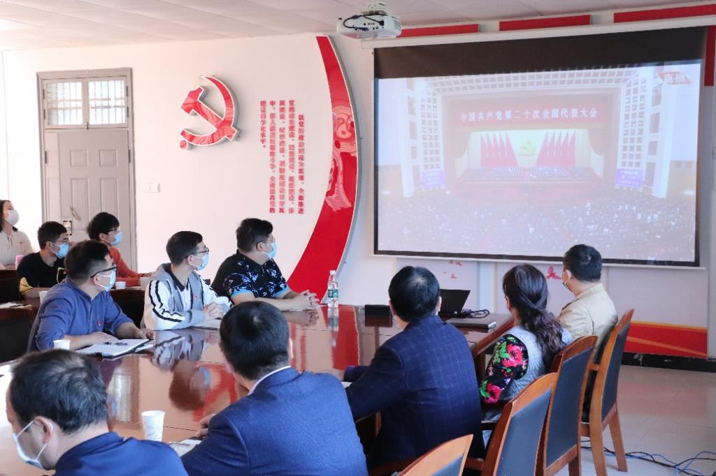 2022年10月16日,中国共产党第二十次全国代表大会隆重开幕。马克思主义学院院长杨金洲,院党委副书记梅喜萍,副院长黎海波、董杰、张涛华,组织员苏盛光,院党政办公室主任魏威,辅导员金瑶、陈玮龙与学生党员代表共同观看了开幕会现场直播盛况,认真聆听了习近平总书记代表十九届中央委员会向大会所作的报告。大家精神振奋,热情高涨,现场不时爆出阵阵掌声。1号楼501会议室内座无虚席、气氛热烈。
