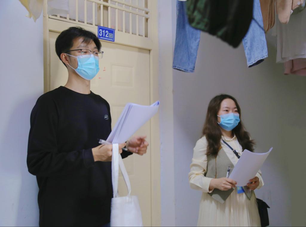 2020级辅导员卡迪尔旦依次敲开10栋各寝室的房门,细细检查房间里的各路电线和插板,并叮嘱男生们:“要注意身体,少熬夜,早上不要赖床,多运动。”2021级辅导员樊晓阳边检查边提醒学生不要赖床,保持良好的生活作息才能确保高效的学习状态。