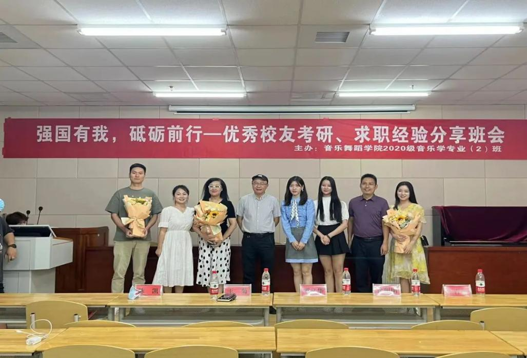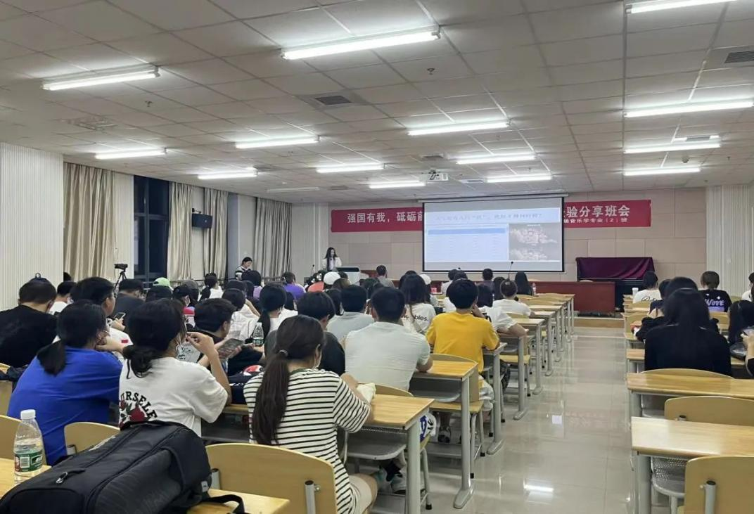 近日,音乐舞蹈学院在14-301教室举办以“强国有我,砥砺前行”为主题的优秀校友考研、求职经验分享会,本次分享会由音乐舞蹈学院音乐学2002班主办。音乐舞蹈学院院长罗义华、辅导员徐照明、音乐学2002班导师王菊、学院教师陈凯、王青璘及音乐学全体学生参加了本次分享会。此次会议由音乐学2002班班长龚书琪主持,音乐舞蹈学院优秀毕业生杨帆、陆欣昀、李曼三位同学进行分享。
