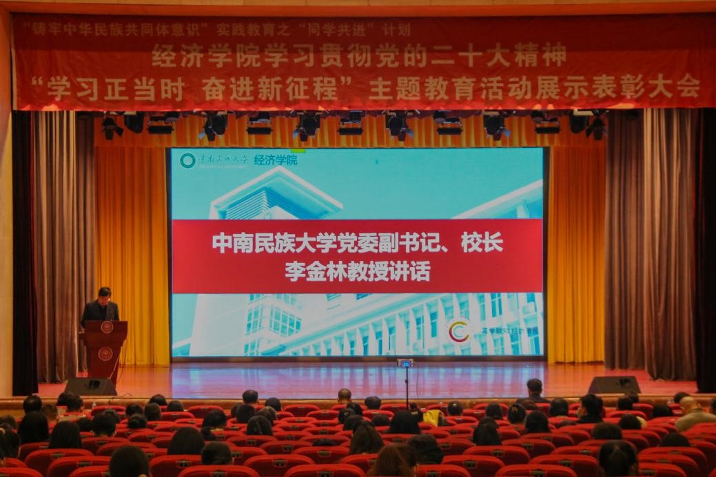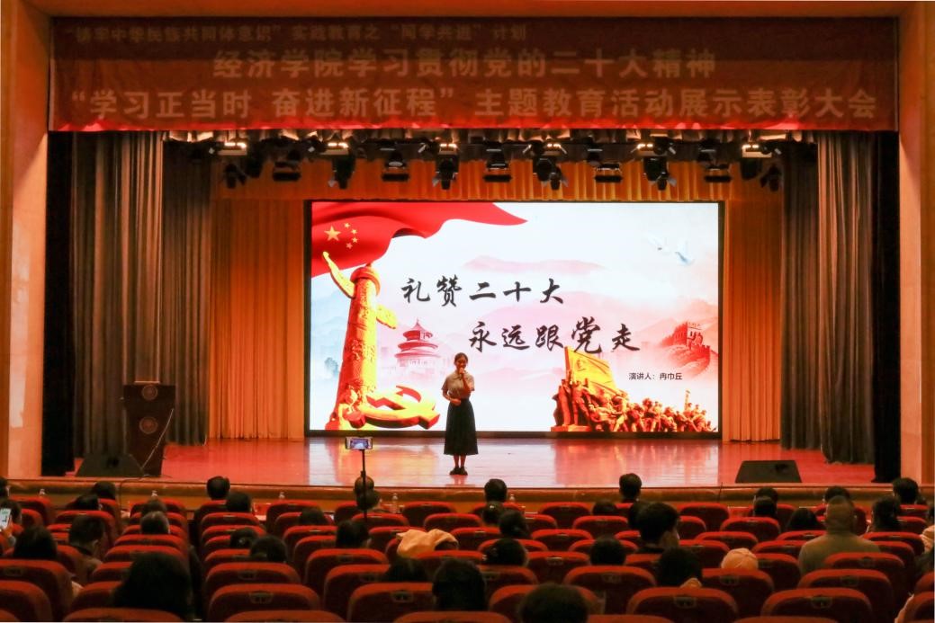 11月22日晚,为学习贯彻党的二十大精神,引导全体学生交流互鉴、共同进步,营造良好的学习氛围,经济学院在学术会堂举办了“学习正当时 奋进新征程”主题教育活动展示表彰大会。威尼斯886699党委副书记、校长李金林,党委学生工作部部长李川国,经济学院领导,全体班导师及辅导员参加表彰大会,“同学共进”及“喜迎二十大”系列活动获奖学生,2021级、2022级学生通过线下线上相结合方式观看。