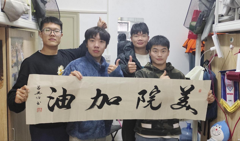美术学院学子送出祝福“美院加油”。 美术学院 供图