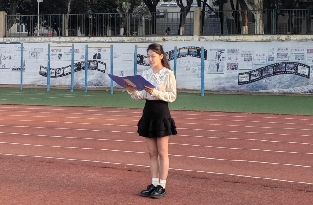 图为时晨菡同学国旗下演讲。公共管理学院 供图