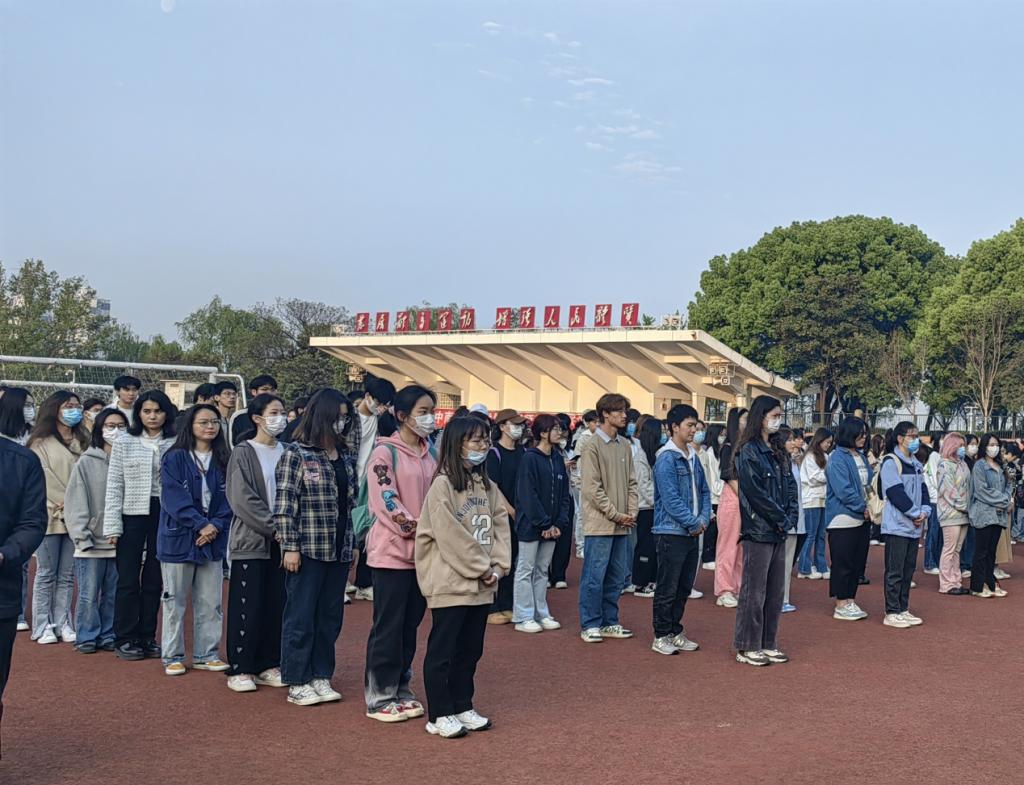 为充分凝聚和激发爱国情怀,培养有理想、敢担当、能吃苦、肯奋斗的新时代好青年,公共管理学院师生代表于2023年4月10日参与升国旗仪式。六点四十分,在公共管理学院党委书记陈昌华、院长吴开松带领下,师生代表按时集合完毕,排成整齐的列队,等待着升旗仪式的开始。