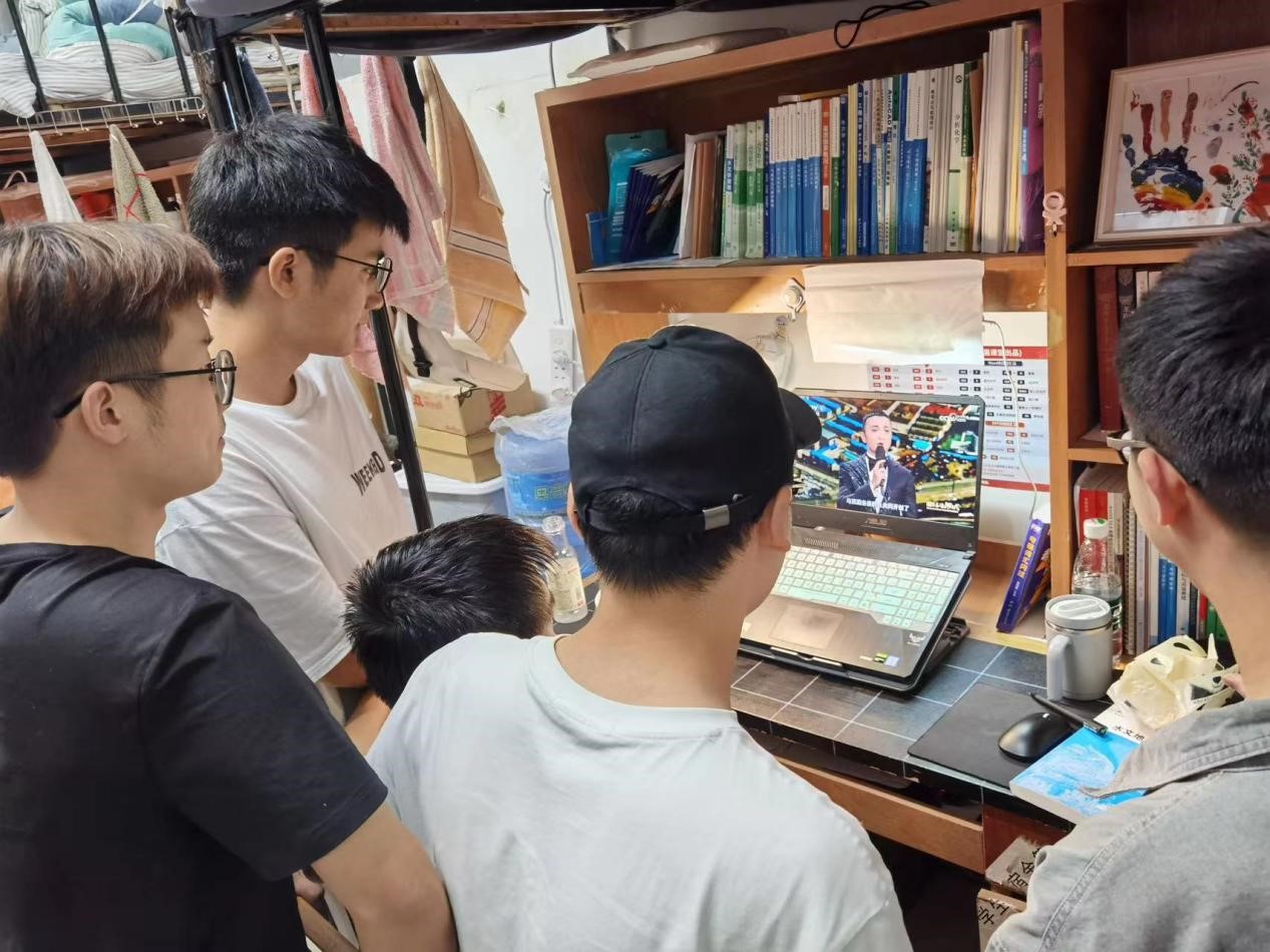 同学们在宿舍收听收看“团结奋进新时代——第十批全国民族团结进步示范区示范单位授牌活动”特别节目直播。 学生工作部 供图