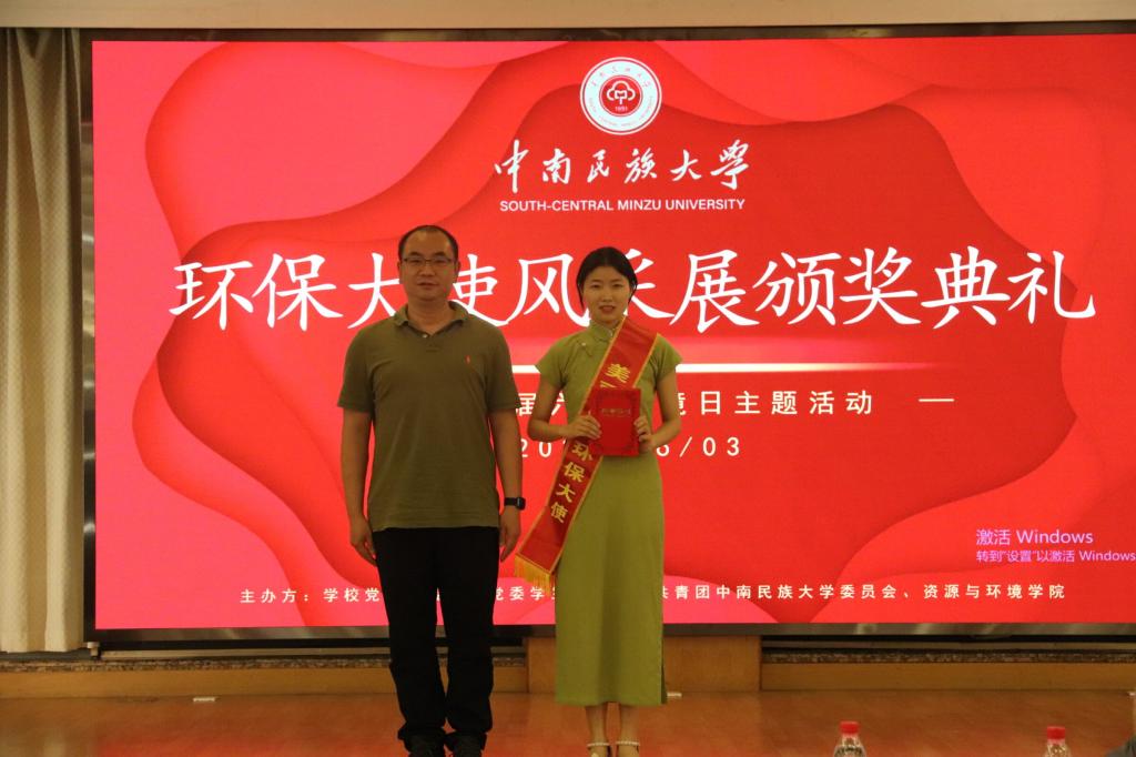 经过激烈角逐,来自资环学院的研究生张胜男所带领的“万物循环”队获得本次环保大使风采展一等奖,团队成员被授予“环保大使”称号。