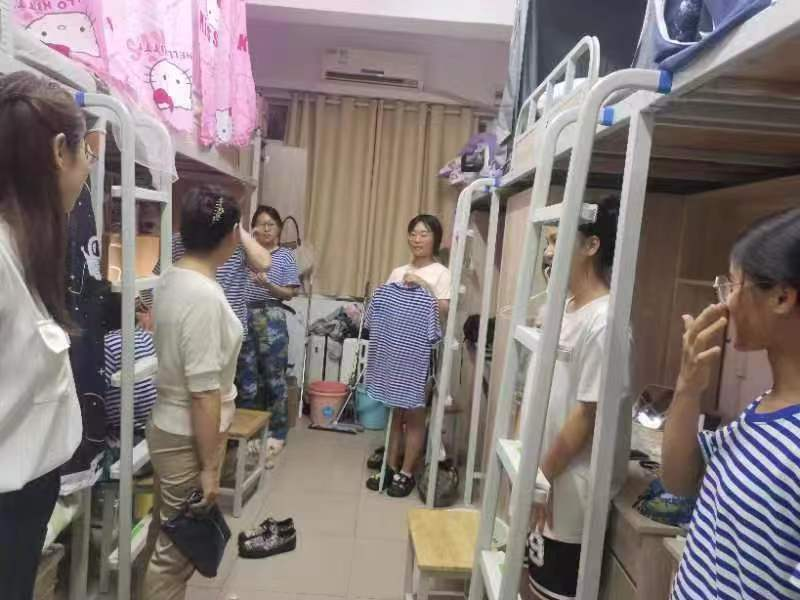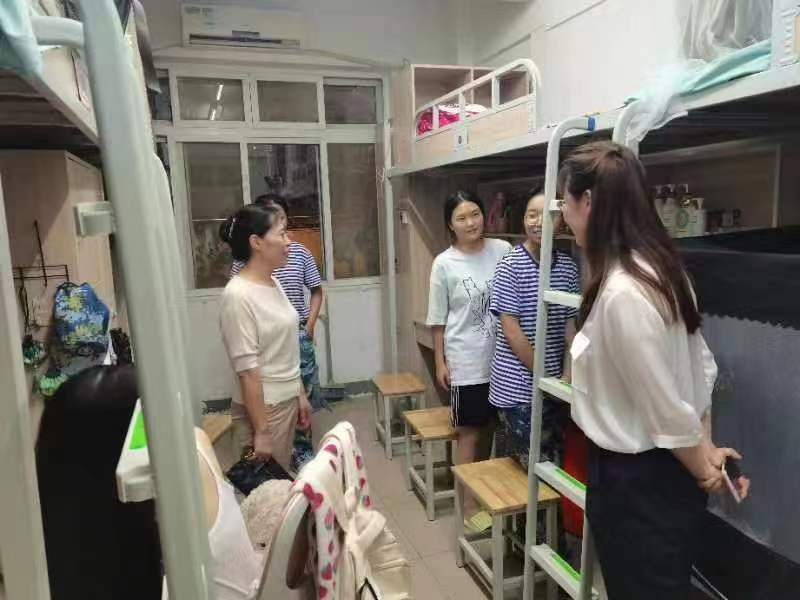 老师们在与同学们交流的同时也检查了每间寝室的卫生和安全状况,对电器的使用是否符合规范特别予以关注,并耐心地对存有一定安全隐患的寝室进行了现场纠正与教育。