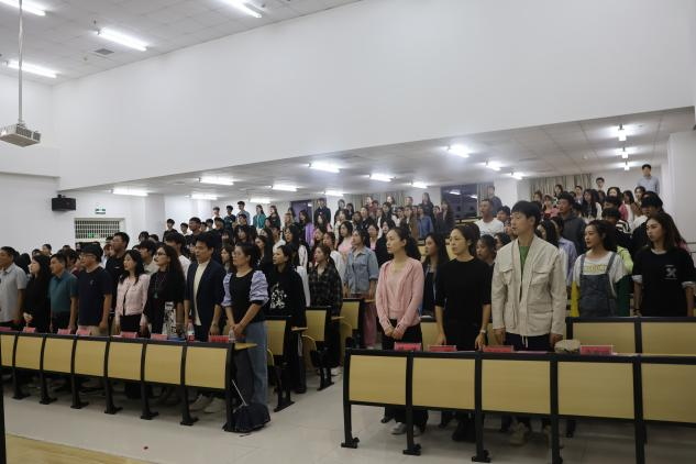 全体起立奏唱国歌。 音乐舞蹈学院 供图