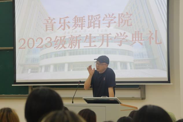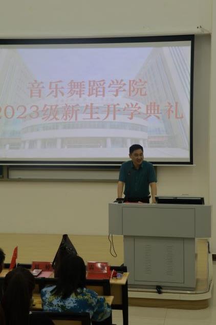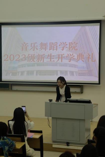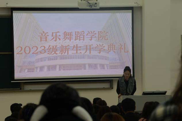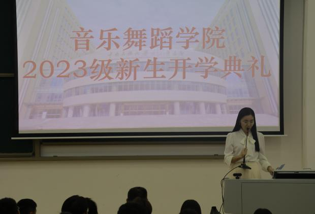 雷波主持2023级新生开学典礼。 音乐舞蹈学院 供图