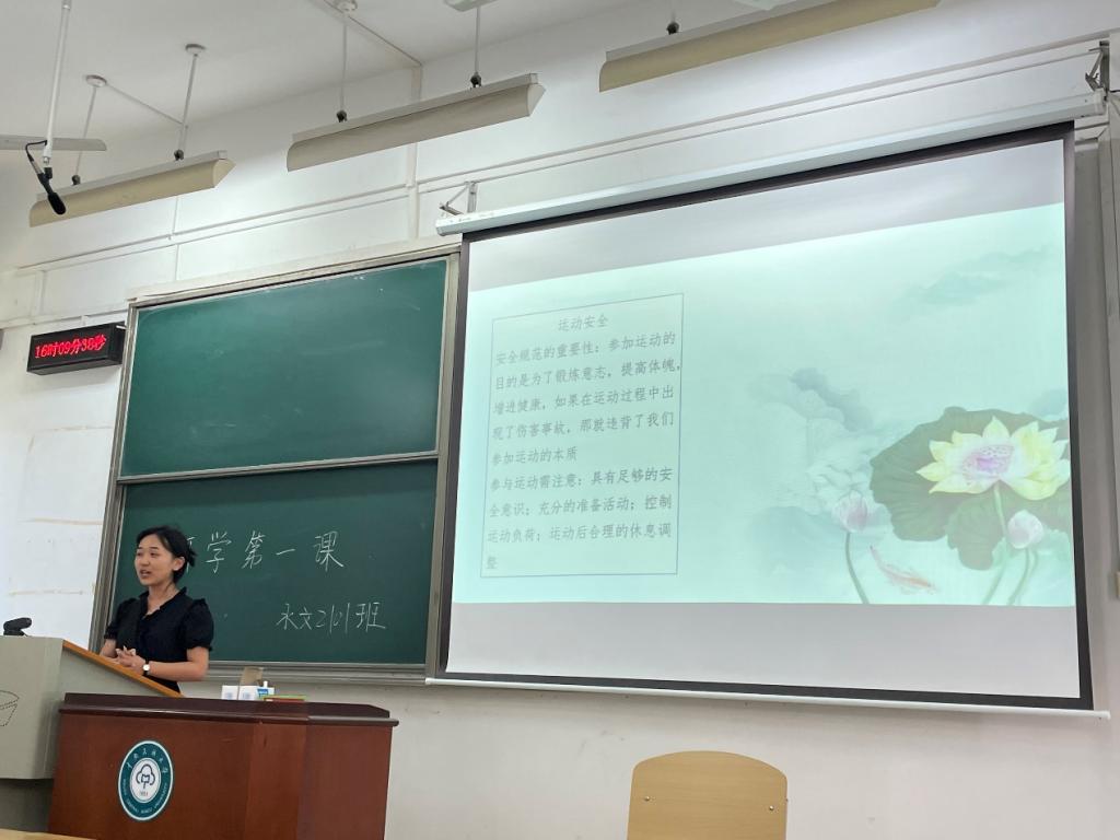 水文2101班团支书讲解安全运动知识。 资源与环境学院 供图