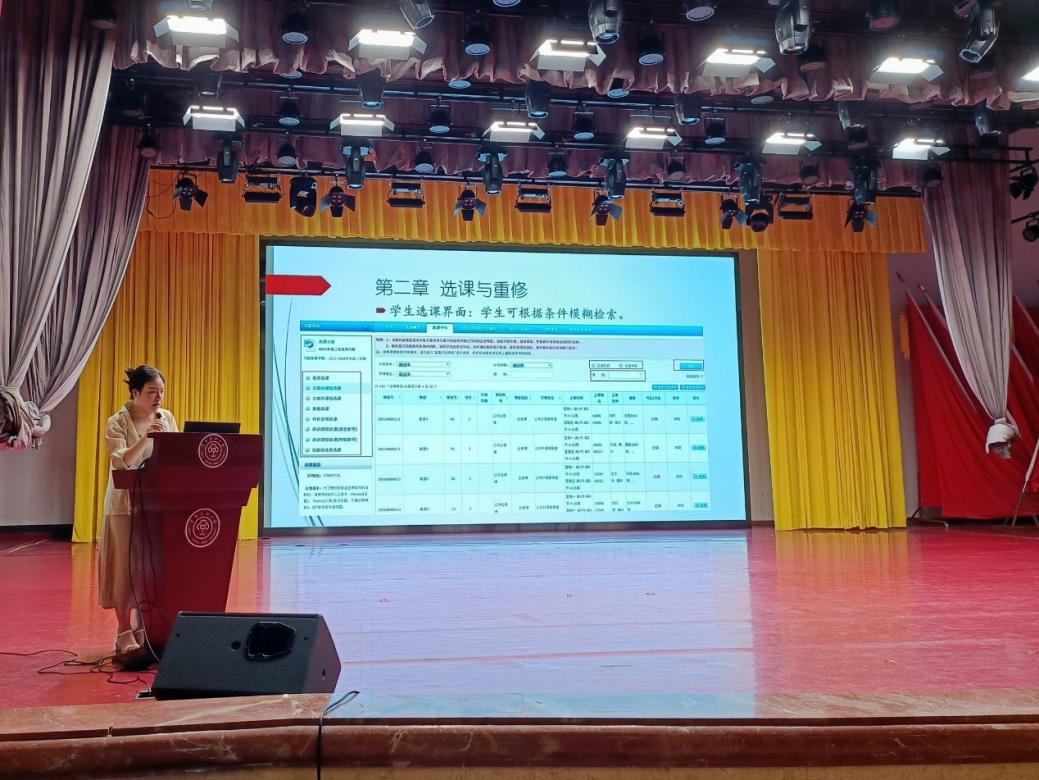 会议伊始,教学秘书黎潇老师详细讲解了教学运行管理方面的细则,包括“学分制”“选课与重修”“辅修双学位”“教务系统”以及“考风考纪”等新生重点关注的内容,解决了新生对于学习课程的选择和教学制度等方面的困惑。