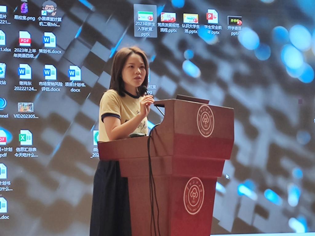 23级辅导员王莹莹老师为全体新生上开学第一课。从什么是大学生活讲到如何过好大学生活,王莹莹老师强调大学不仅仅是学业素质的提高,更是综合素质的培养。