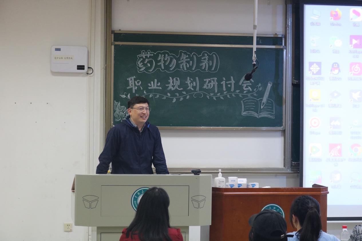 10月13日晚,药物制剂系在15103教室召开本科生职业规划研讨会。浙江华海药业股份有限公司人力资源部经理高斌、药学院2017届校友、现任华中科技大学同济医学院附属协和医院药剂科药师柯磊、药学院副院长李小军副教授为药物制剂系同学们指点迷津。