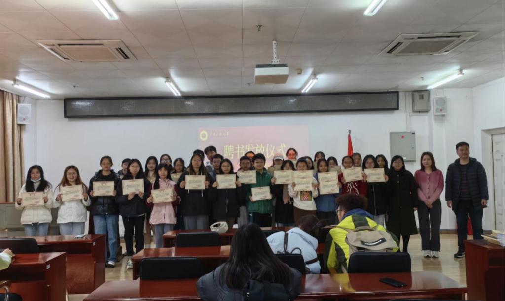 11月16日,资源与环境学院于13栋教学楼举行了2022届团委学生会成员聘书颁发仪式。学院党委书记刘子元、副书记蓝永丽、学工办主任黄晴、院团委副书记王莹莹以及22、23届团委学生会成员参与了此次活动。仪式由团委学生会黄秋实主持。
