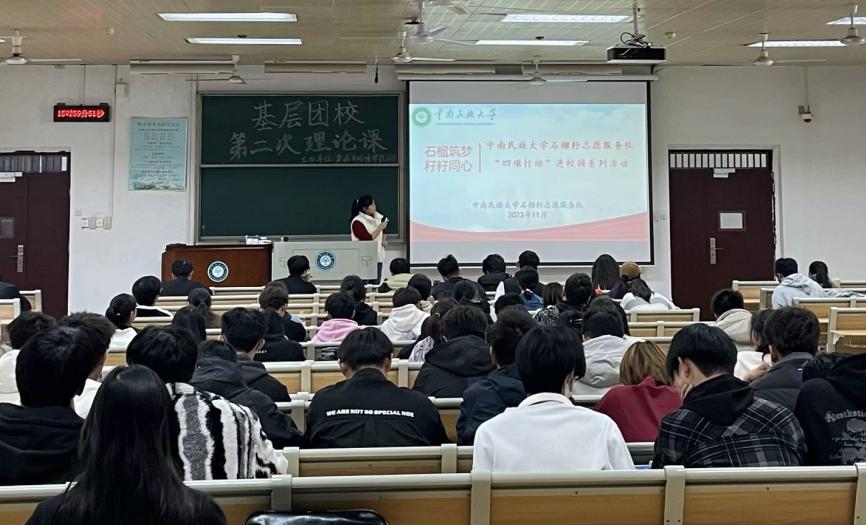 11月21日,资源与环境学院2023-2024学年基层团校理论课第二讲于11栋教学楼200教室开讲。本次课程由石榴籽志愿服务队指导老师李然老师主讲,院团委副书记王莹莹、院团委组织部全体成员及百余名团校学员参加课程。