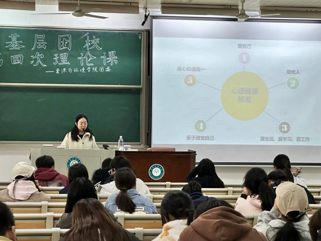 本次课程由校学生心理健康教育中心的李晨老师授课,资源与环境学院组织部全体成员及百余名团校学员参与。