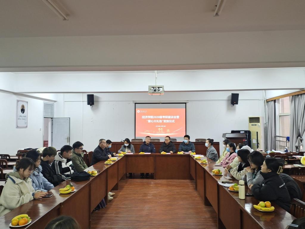 为进一步加强对考研学子的关心慰问,鼓励他们积极备考、乐观应考,12月14日上午,经济学院在学院会议室为考研学生代表集体发放“爱心大礼包”。学院领导班子成员、教研室主任代表、毕业班辅导员、班导师和考研学生代表参加。